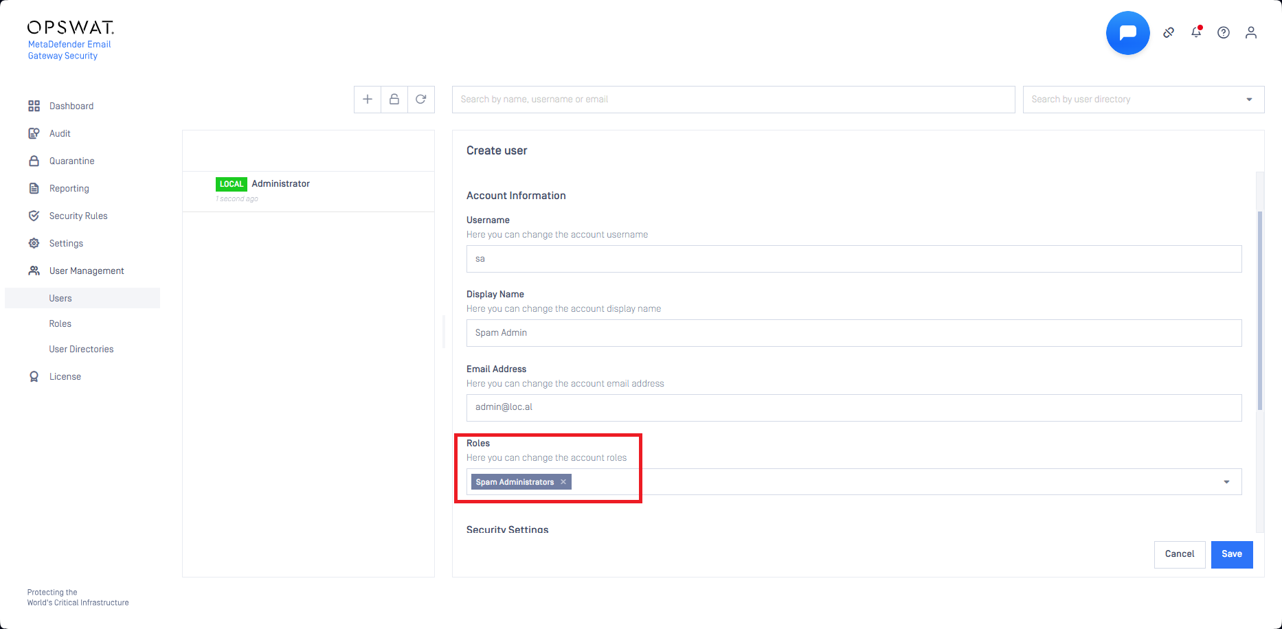 - Users created like this will have access to the dedicated quarantine area only