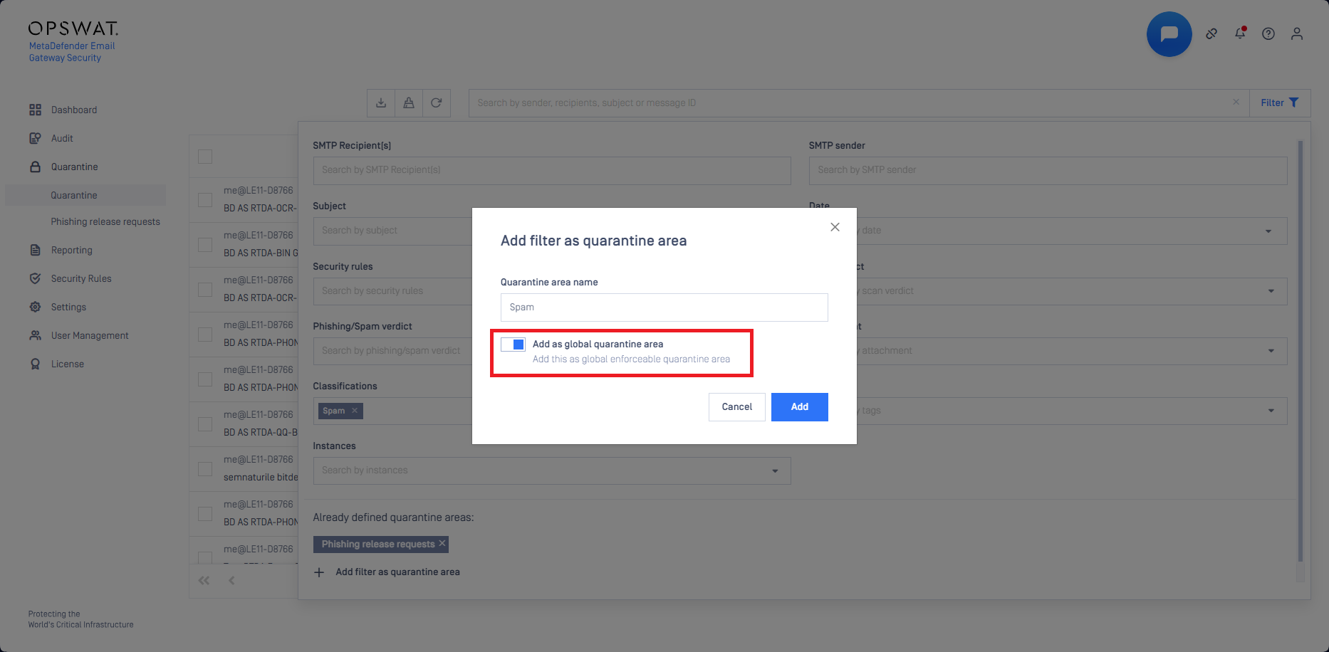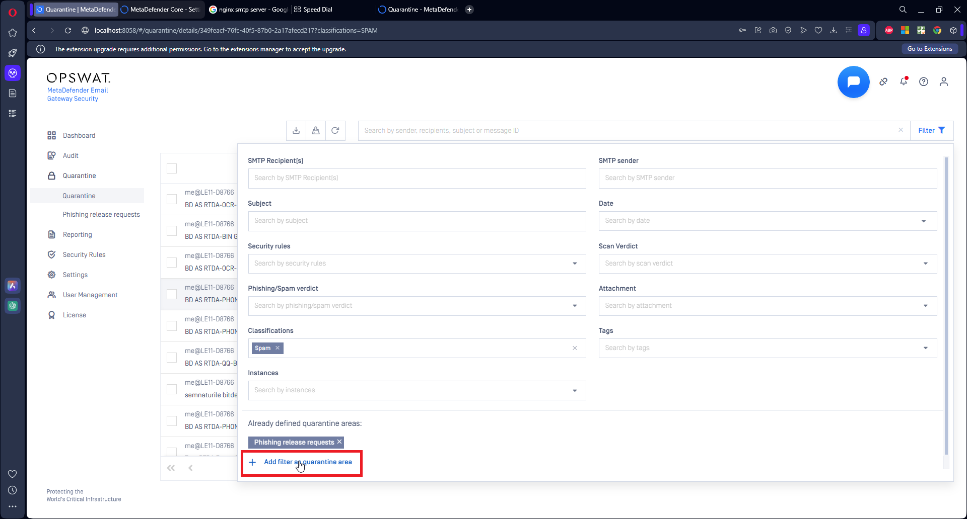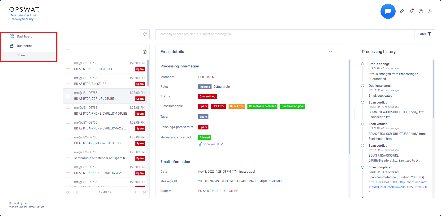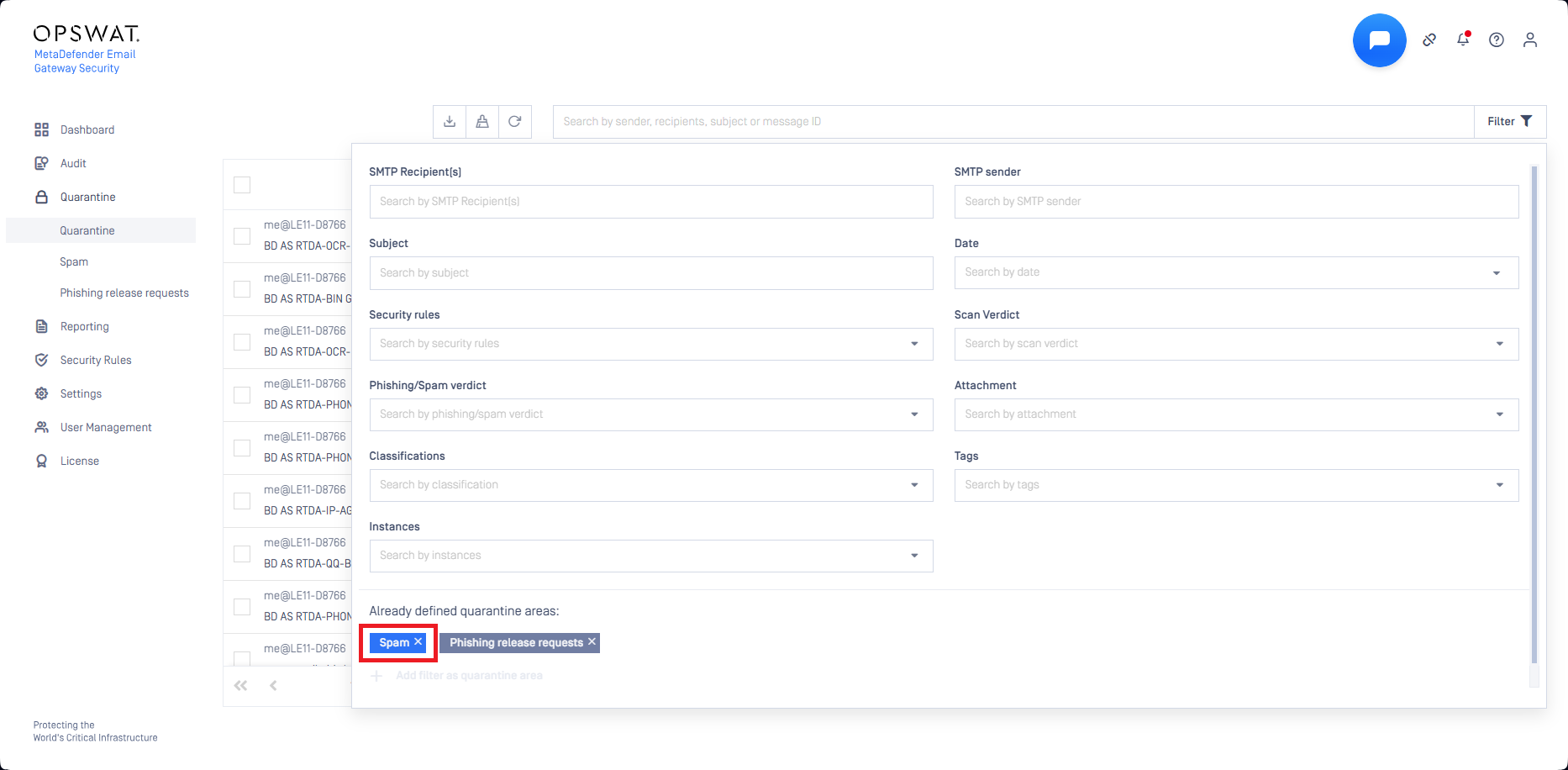 Quarantine is the safe storage for emails which were blocked or sanitized by MetaDefender Email Gateway Security.