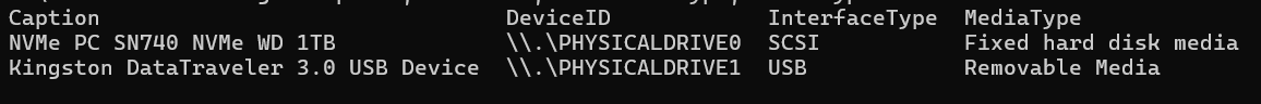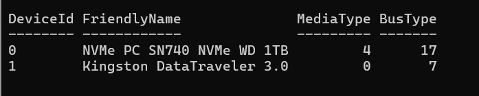 These commands will show the BusType and MediaType associated with your device.