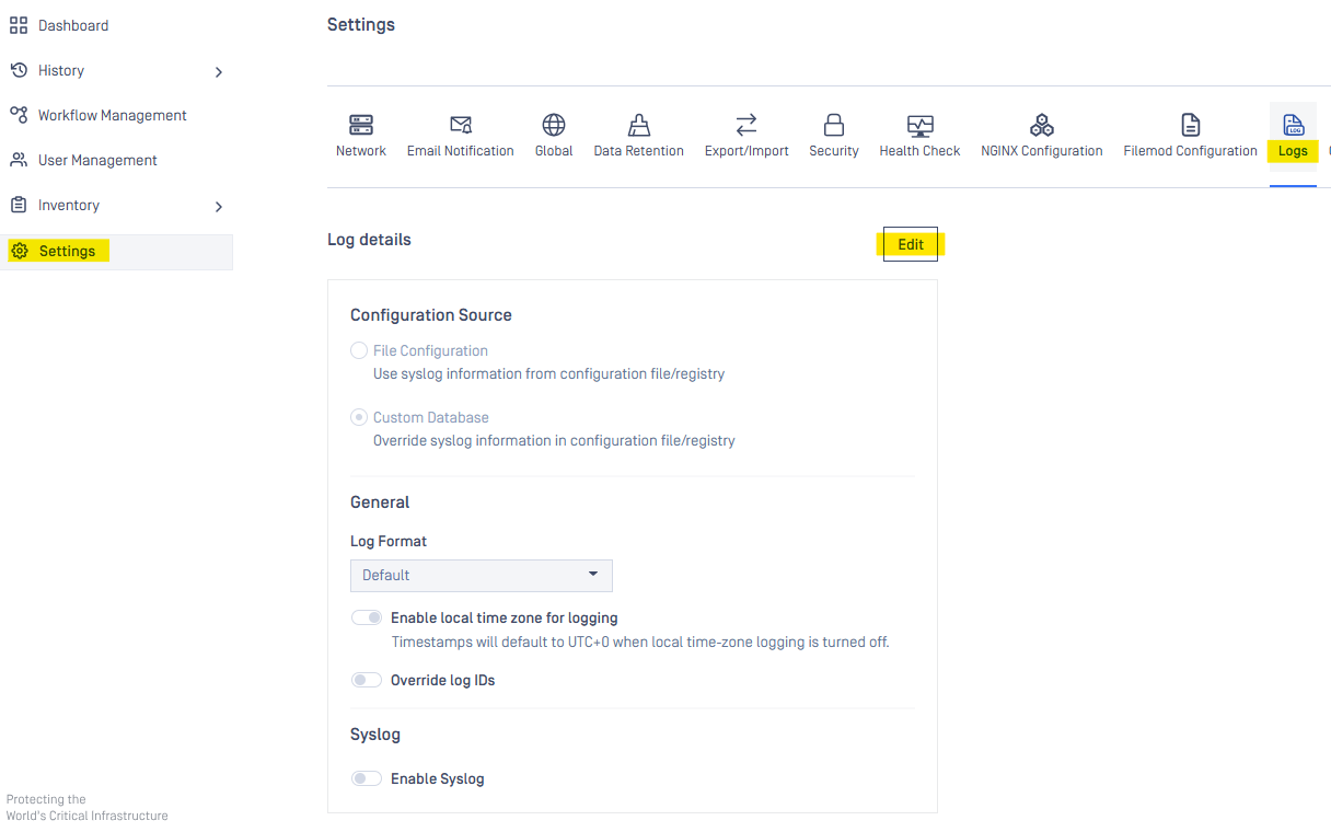 | Support Advanced Log Configurations on Web Console | Starting with MetaDefender ICAP version 5.13.0, the following advanced log configurations including local time zone, Common Event Format, product logs and syslog settings are supported This UI configuration is also support for CM10 integration