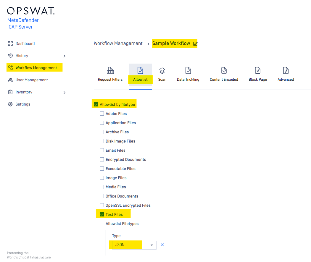 | Allow List by File Type Per Workflow | Starting from v5.9.0, MetaDefender ICAP Server now performs File Type Verification before sending files to MetaDefender Core for processing. This helps reduce the MetaDefender Core load by filtering unnecessary files before scanning (see Allow list). Note: To enable the Allow List feature on Rocky Linux 9.x / Red Hat 9.x, users must install