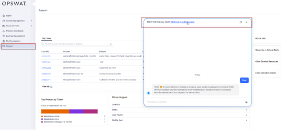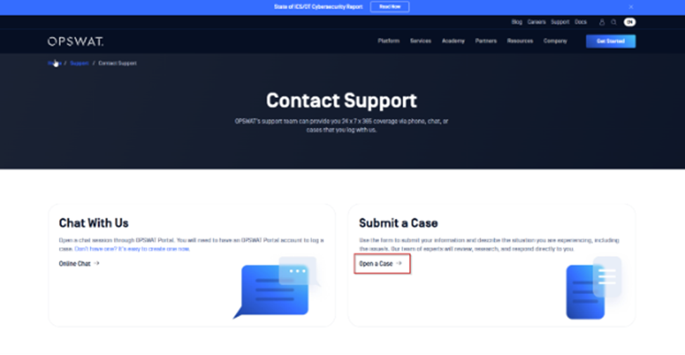 Should you receive no contact from OPSWAT within 48 hours of submitting the contact form, please follow the instructions below to request your trial via a support ticket: