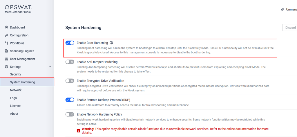 This article applies to the MetaDefender Kiosk Hardened Image 24.06 or above