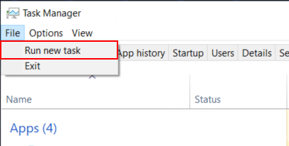 - On Task Manager > File > Run New Task > type "microsoft-edge:about:blank" > Enter to open MS Edge.