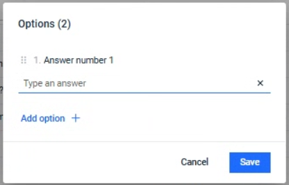| Step 3 | Define answers to the question. Click Add option to define more answers
