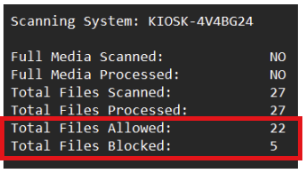| Kiosk session logs include total of allowed and blocked files | Kiosk