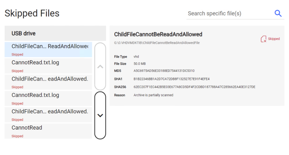 | Improved scan result display of skipped files when scanning for Disk Image Files (VHD/VHDX) in KIOSK | Kiosk now