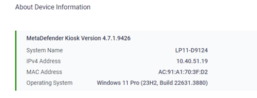 | Display OS Name and IP Address | The OS name and IP address of the KIOSK are now displayed on the KIOSK console, making it easier to identify and manage the OS and network configuration of the device.