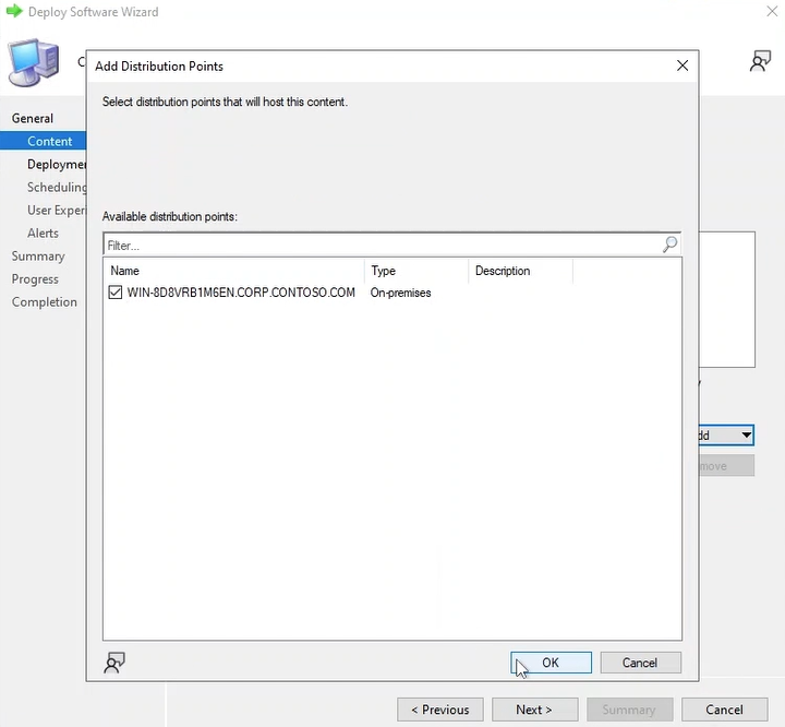 - On the next page, configure the points that will host this deployment by Add → Distribution Point