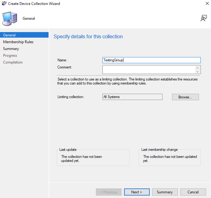 - If collection not created yet, go to the Assets and Compliance → Device Collections, create the collection.