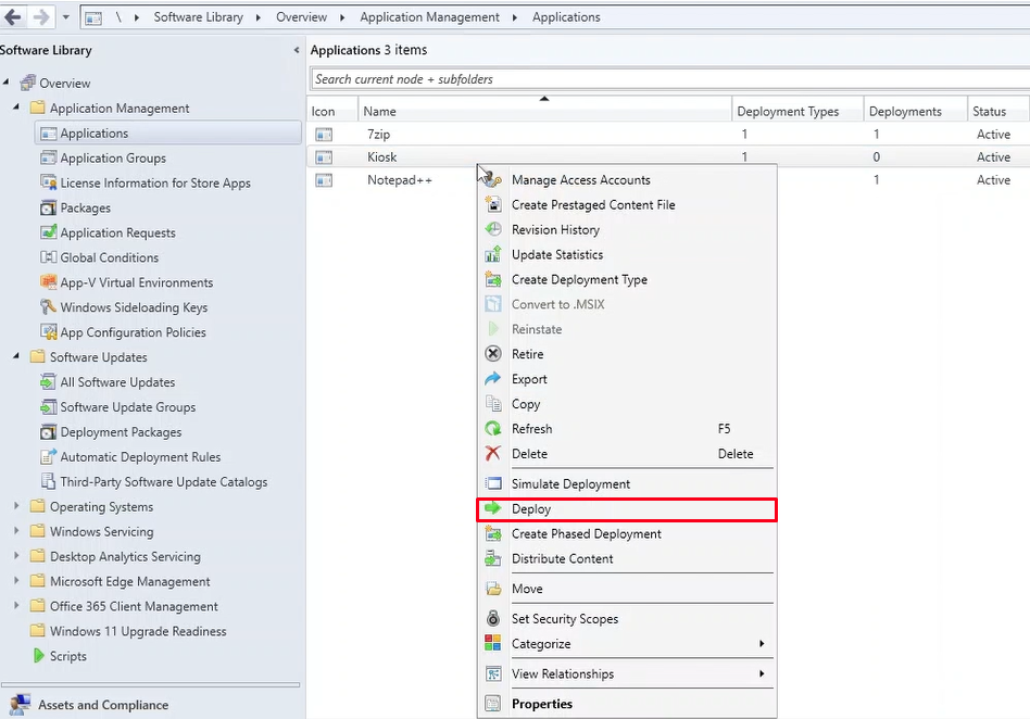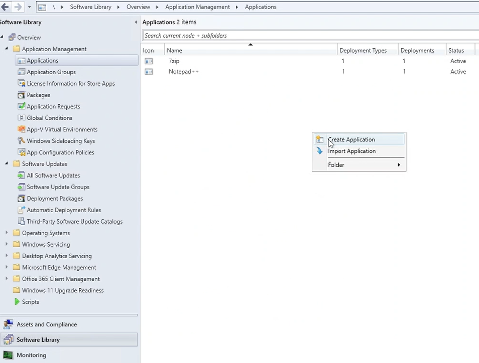 - Navigate to Software Library → Overview --> Application Management → Applications