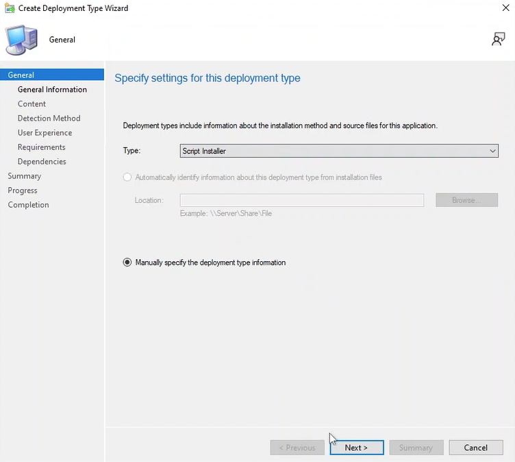 - Select Add to add new deployment types for your application with manual config by script installer.