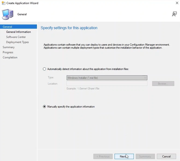 - Because Kiosk Installer is an .exe (not .msi), so we need to manually set up the application information by choosing Manually specify the application information on the appeared pop up.