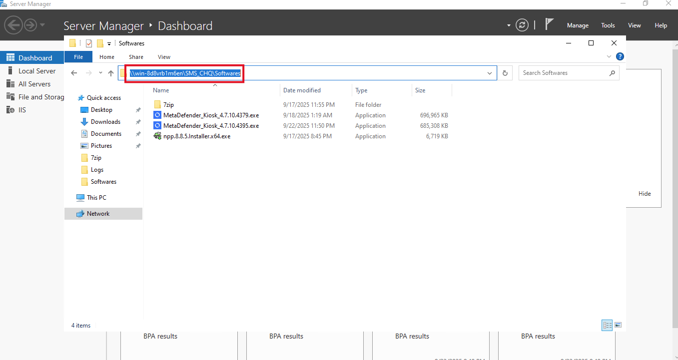 - Copy the Kiosk installer (MetaDefender_Kiosk_ <version>.exe) to the network share folder of on the SCCM server (e.g <hostname>\SMS_<sitecode>)