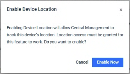 | Step 3 | Click Enable button to share Device Location with My OPSWAT Central Management When enabled, Kiosk will enable certain services for tracking purposes. Click *Enable Now *
