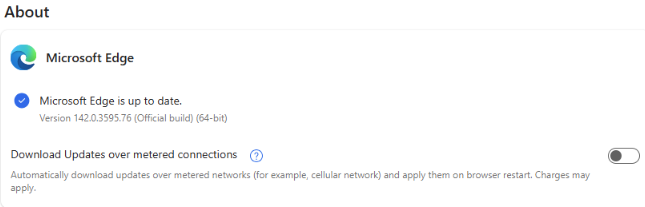 - Once the install was completed successfully, open Microsoft Edge > Settings > About Microsoft Edge to verify the version