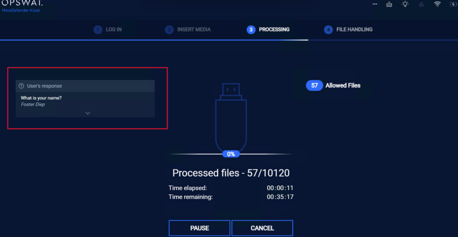 | Option to display question responses during file scans | Administrators can configure Kiosk to display question responses during file scans for improved usability and context awareness.