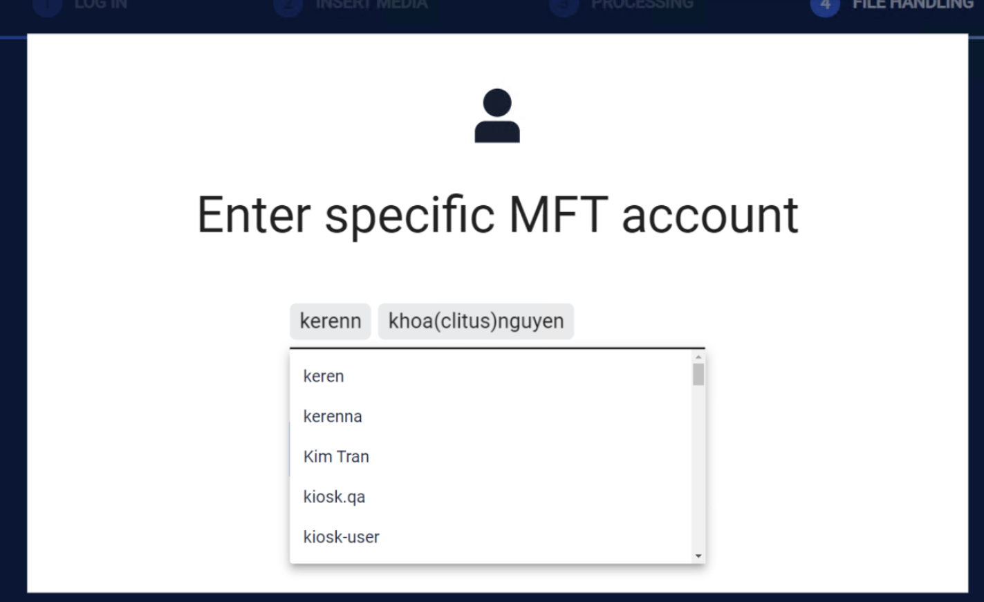 | Send processed file to MFT accounts without authentication required | Kiosk introduces a new option that allows administrators to configure the Kiosk to send processed files to MFT accounts without requiring prior user authentication