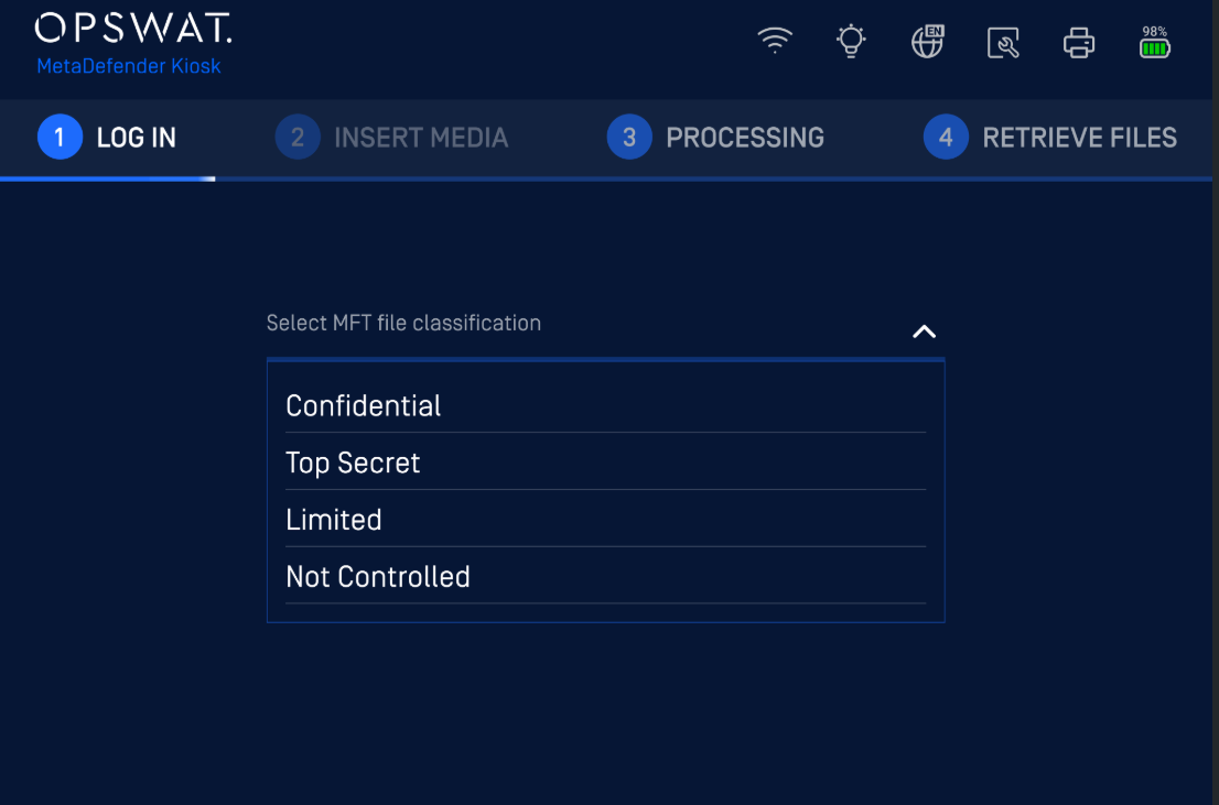 Enforce user-selected file classification for file scanning and storingKiosk introduces file classification tags prior to scanning, ensuring compliance with data categorization policies. Classified files are seamlessly transferred to MFT along with their metadata.