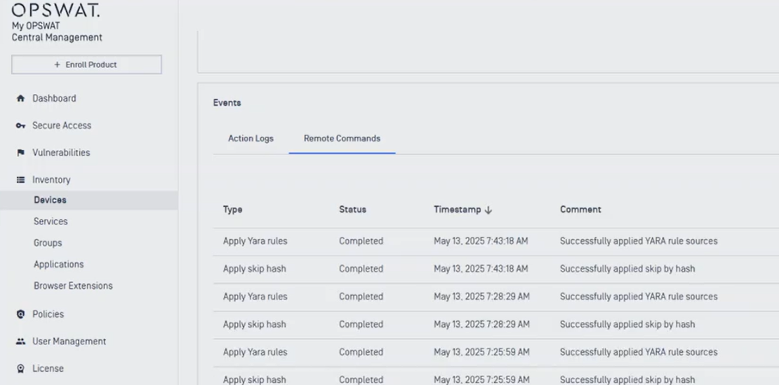 | Centralized YARA and file hash management via CM10 | Central Management now supports centralized importing of YARA rules and file hashes via REST API. Kiosk will seamlessly apply these items to the embedded Core engine, enabling streamlined, centralized policy enforcement across all connected Kiosk devices.