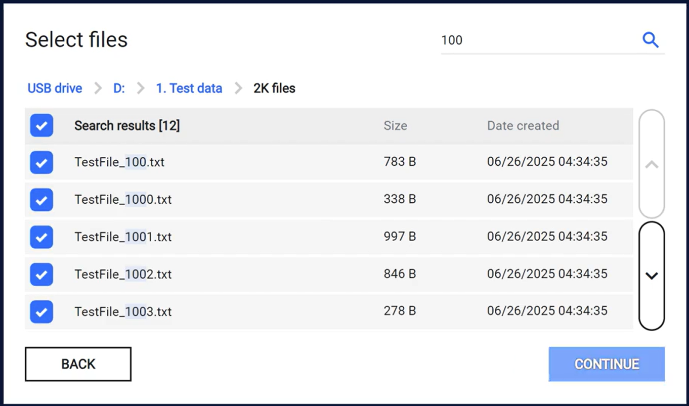 | File search for scanning | Kiosk now allows users to search for specific files to scan, making file selection faster and more convenient.