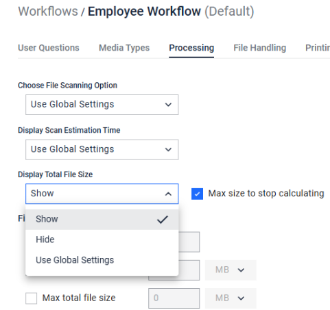 | Configure file-size calculation per workflow | Administrators can now configure file‑size calculation settings per