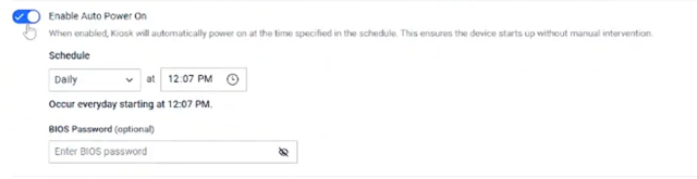 | Kiosk supports scheduled shutdown and startup | Kiosk now supports scheduled shutdown and startup of the device, enabling
