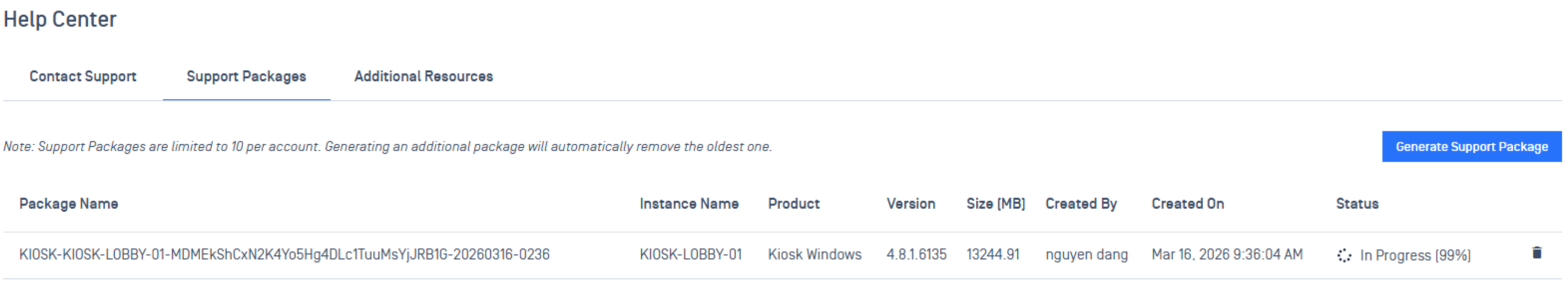 collect and download Kiosk support packages directly from OPSWAT Central