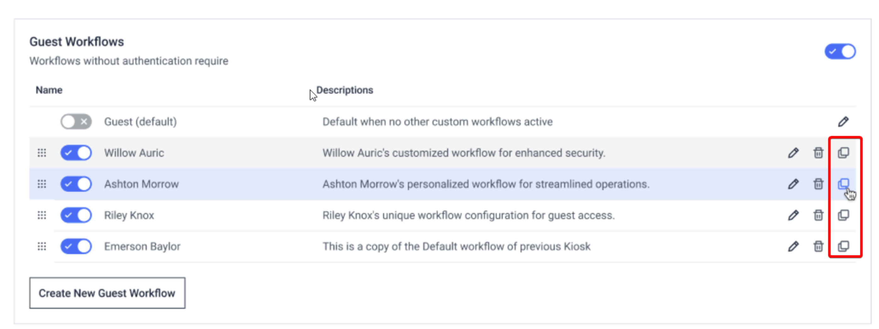 | Kiosk supports cloning existing workflows | Administrators can now quickly clone