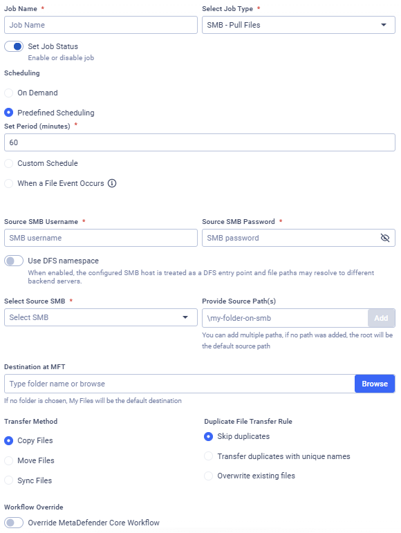 Use this type of job to automatically pull files from a file share on a remote host using the SMB protocol.