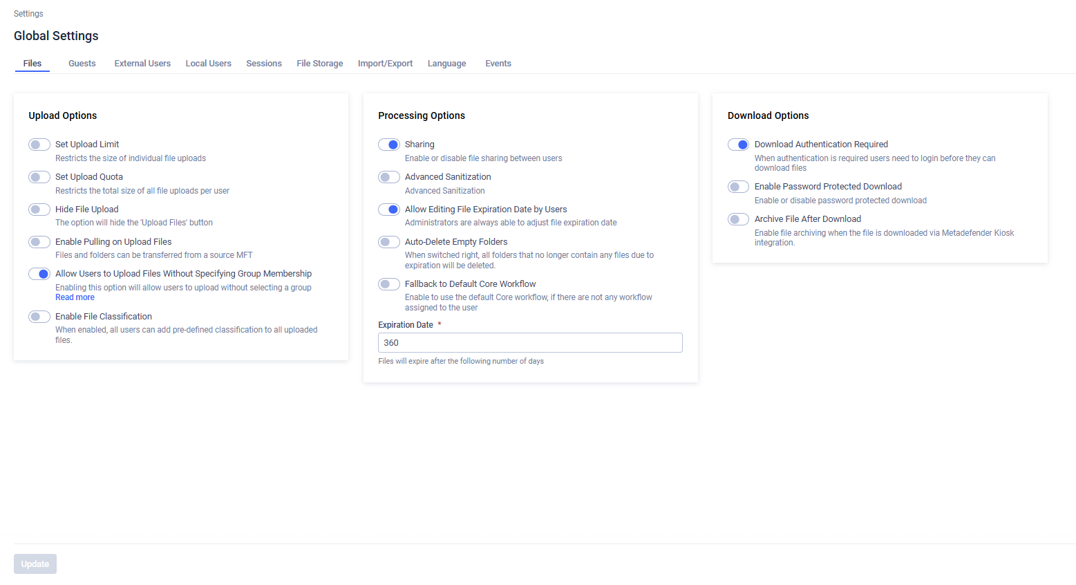 If the File Classification enabled, the MetaDefender® MFT can handle classifications received from MetaDefender Kiosk™. These classifications cannot be edited or changed by the admin or the users.