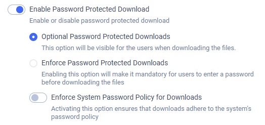 - Enforce: Requires users to download files or folders in password-protected archives.