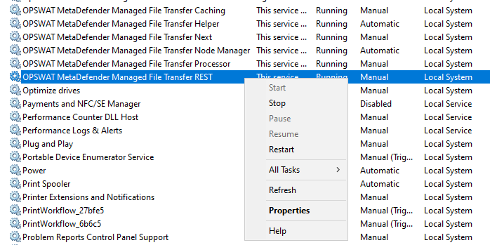 In certain maintenance or configuration scenarios (for example, updating certificates), you may need to trigger a manual failover. To do so you have to go to the currently active node and stop one of the application services in the Windows Service window.
