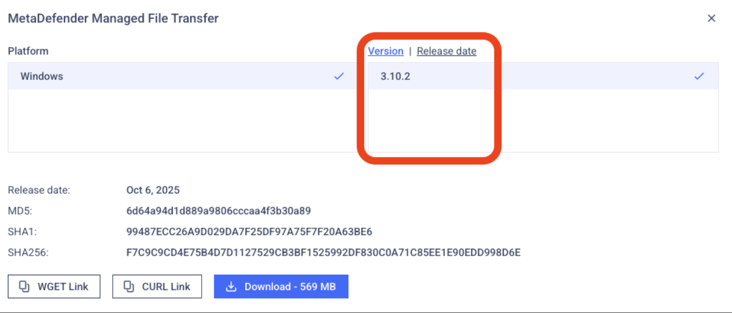 Browse MetaDefender Managed File Transfer Release Notes for details on the latest version, version history, version comparisons and release notes.