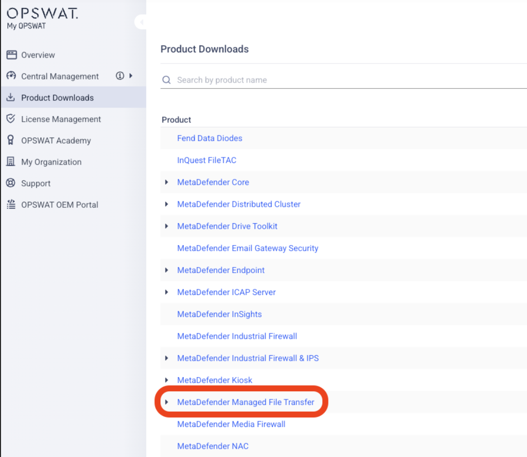 Alternatively, go directly through the My OPSWAT for a list of available downloads.: