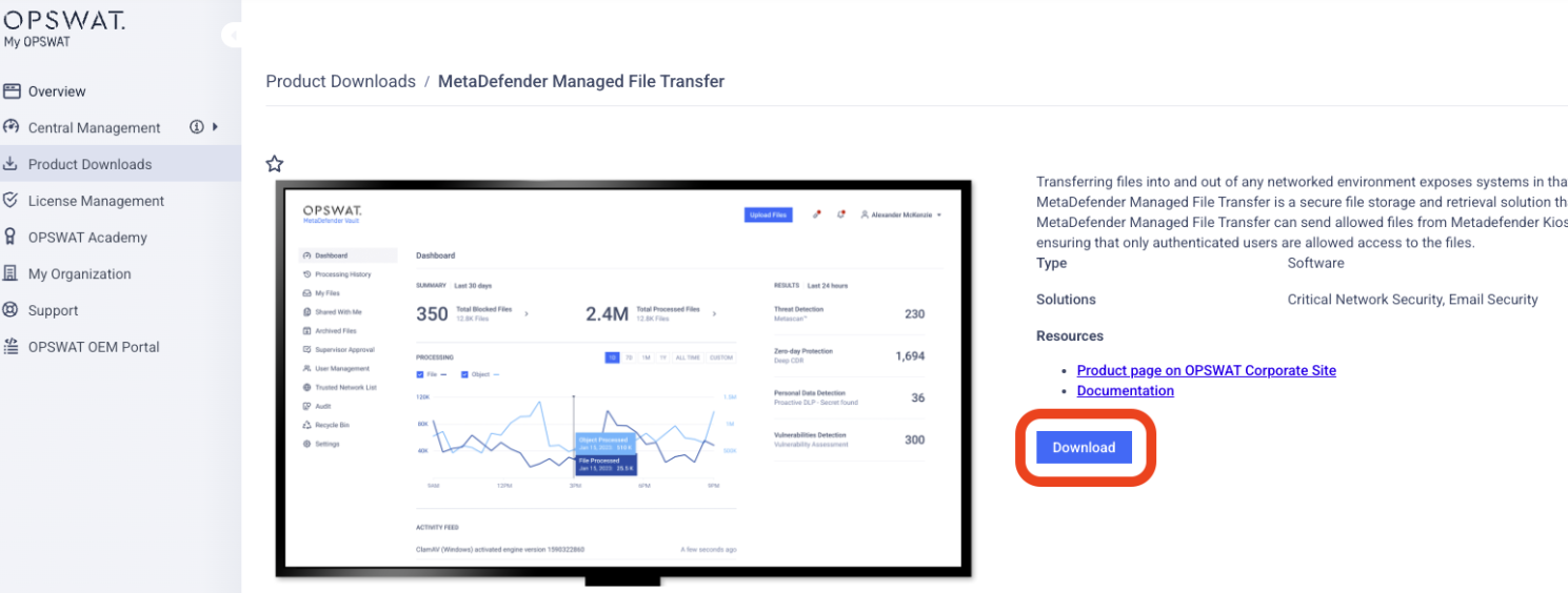 OPSWAT highly recommends that users upgrade to the latest version of MetaDefender Managed File Transfer. Current versions incorporate state-of-the-art features and necessary bug fixes, and are freely available for all license holders to download.
