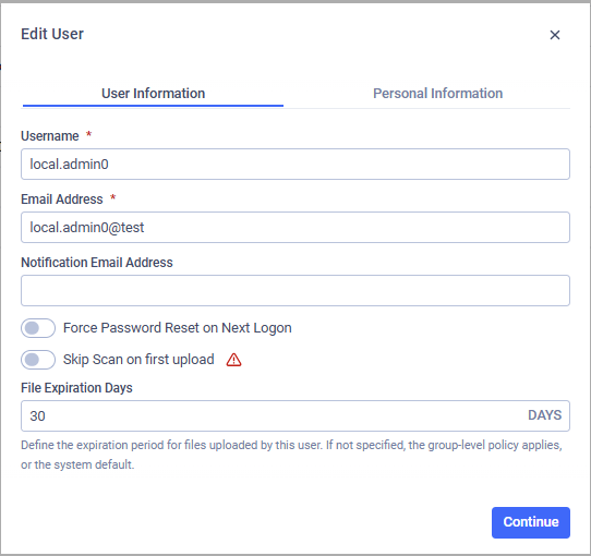 Administrators can configure custom File Expiration Days for users.