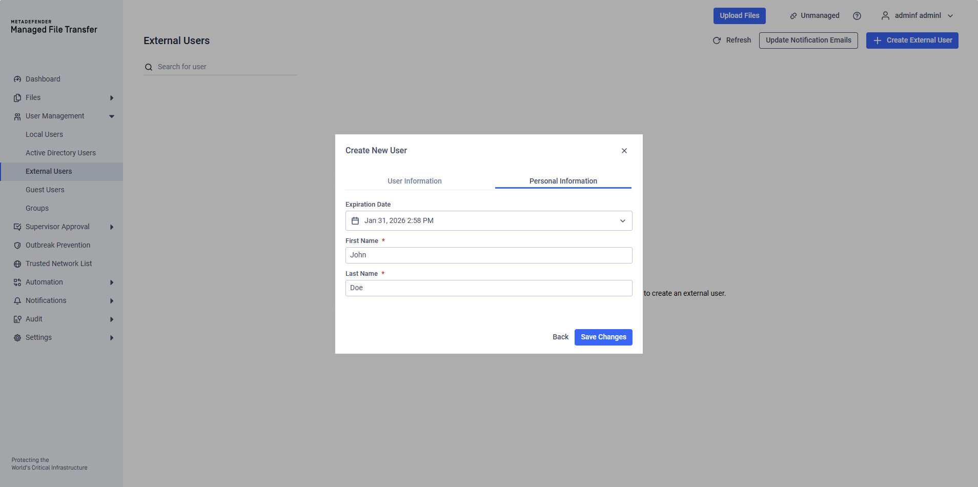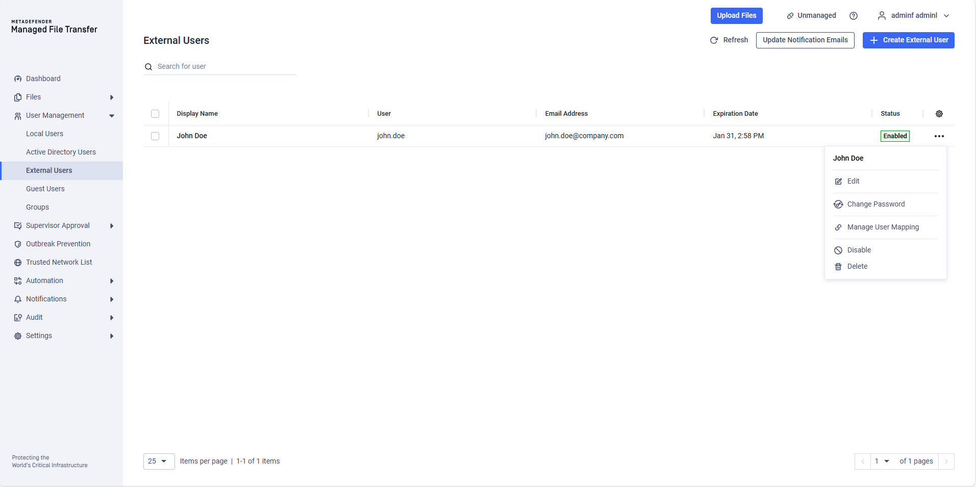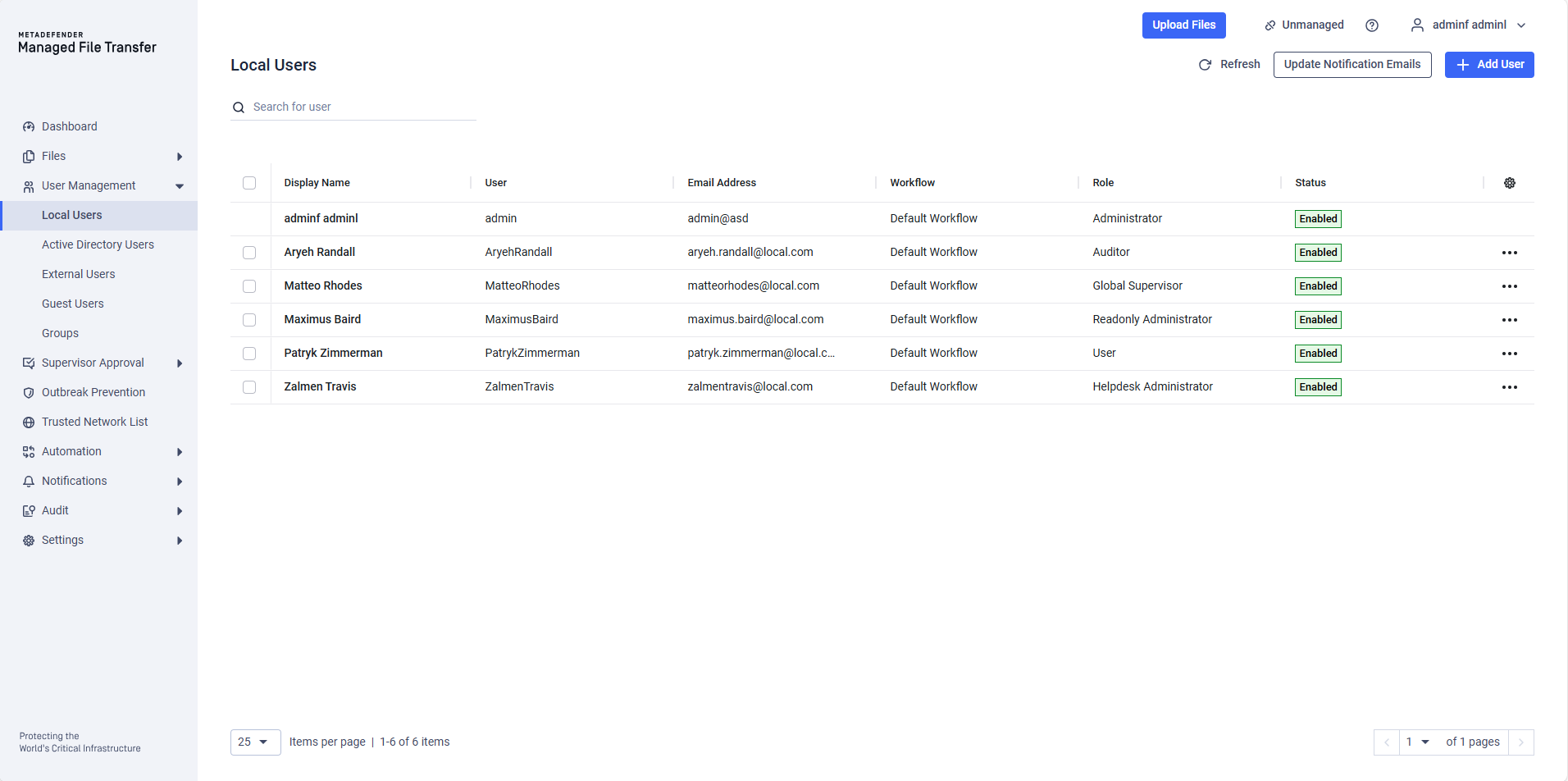 MetaDefender Managed File Transfer™ supports several types of users: