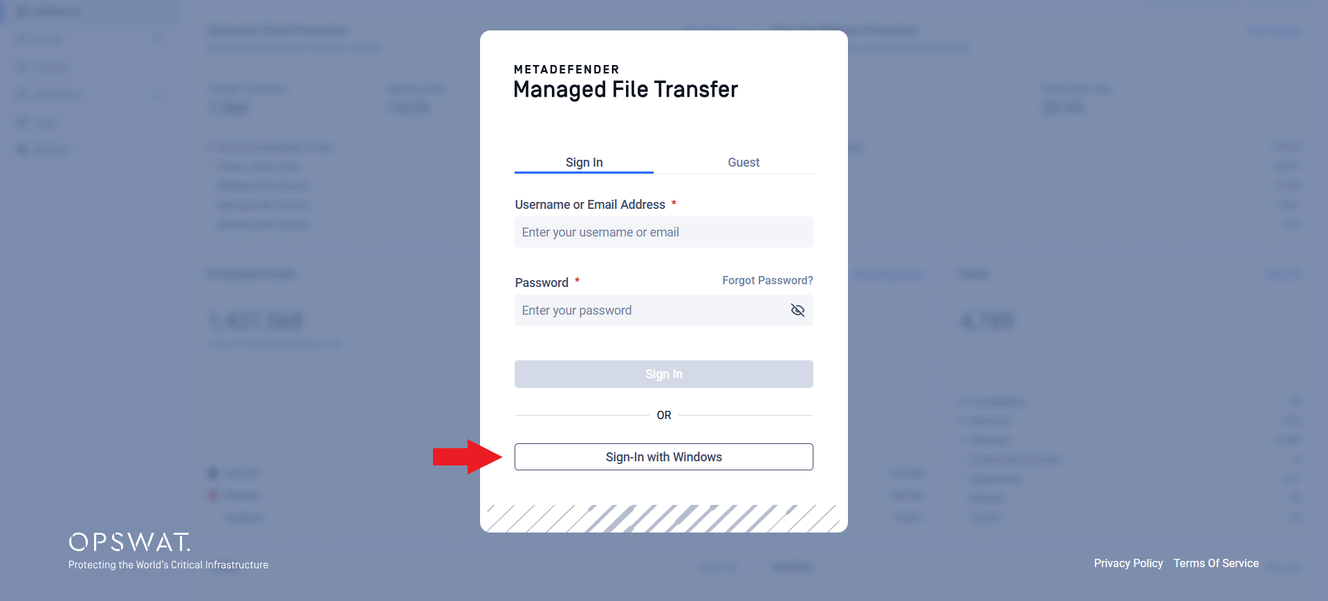 If MetaDefender® MFT is set up to use Active Directory with Integrated Windows Authentication, you can sign in quickly using your Windows account.