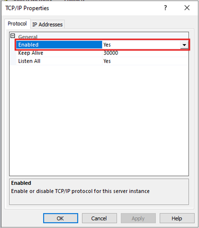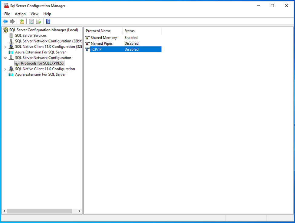 Firstly, open SQL Server Configuration Manager, navigate to SQL Server Network Configuration -> Protocols for SQLEXPRESS -> TCP/IP