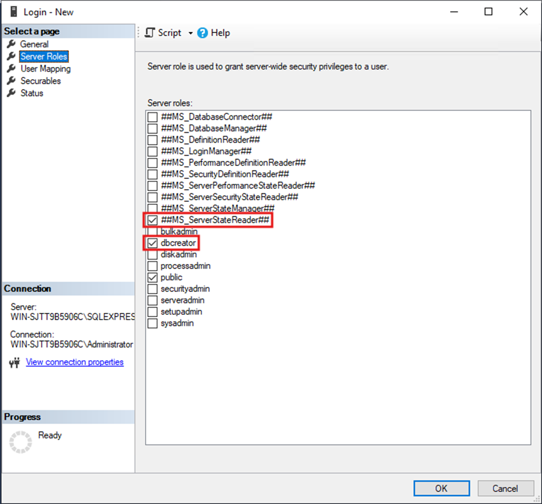 In addition to this, the ServerStateReader server role needs to be assigned to this user, for correct functionality of the MFT database monitoring feature.