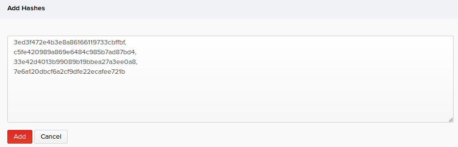 2. Type the MD5 hashes on the right pane (each separated by a comma) and click Add