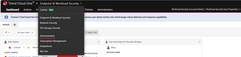 1. Log in to the Trend Cloud One™ dashboard and select Endpoint & Workload Security.