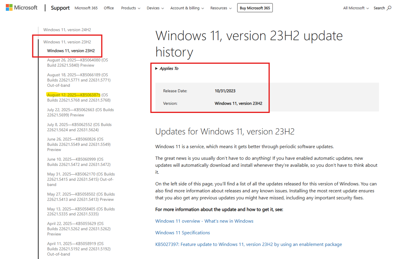 • The kb_id (KB5063875) points to the update baseline of Windows 11 23H2, which is the OS you’ll have after the upgrade.
