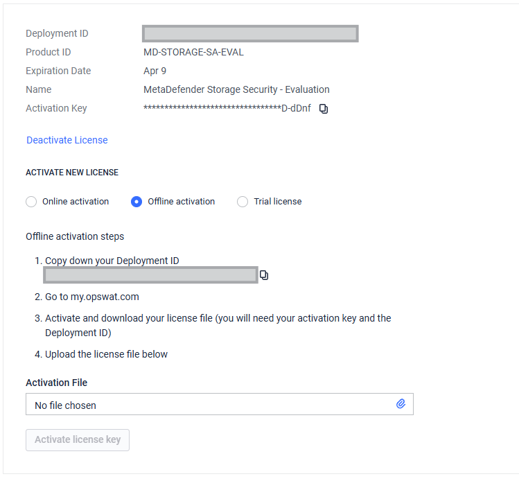 - activation.dl.opswat.com needs to be accessible in order to activate the license or alternative please do an offline activation by following the instructions in the Offline activation screen