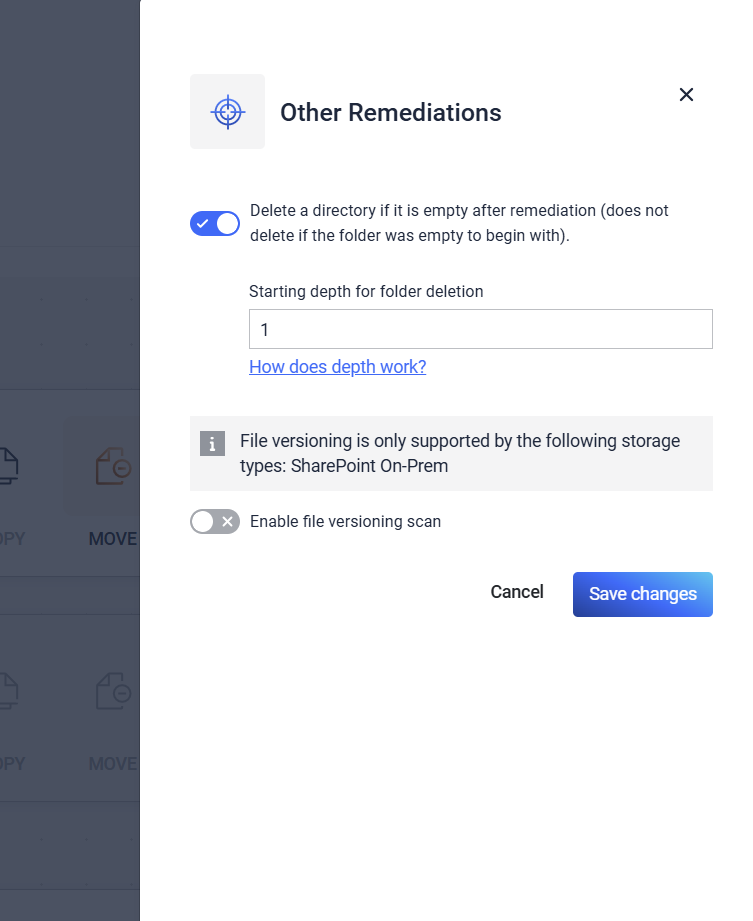- In the modal window opened, toggle the "Delete a directory if it is empty after remediation" option