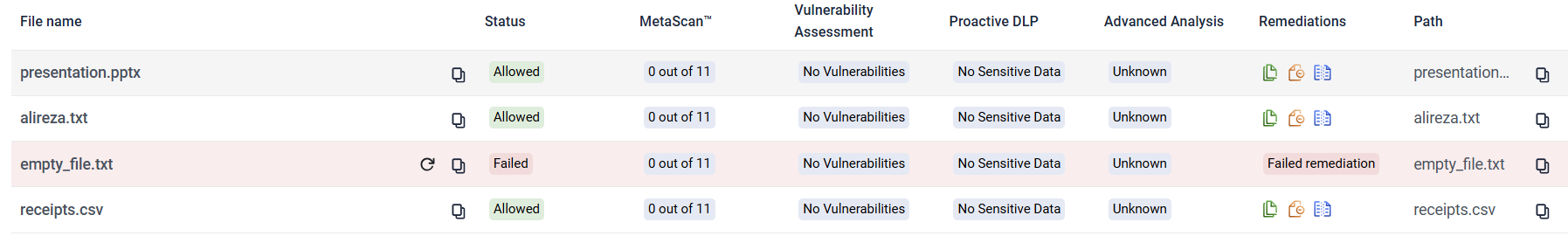 When remediation actions are configured in a workflow and a user initiates a scan using that workflow, there is a possibility that some files may be discovered and scanned by the Scan Instance but fail during the application of remediation actions.