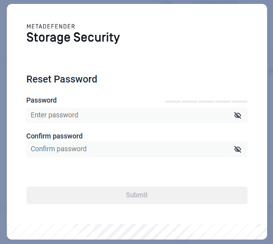- In the new tab, you are asked to provide the new password and to confirm it. Please click on Submit to finish the password reset.