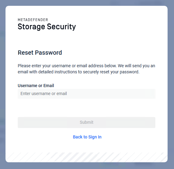 - This will redirect you to a page where you can provide either the username or the email address associated with the account you want to change the password for. To continue, please click Submit.