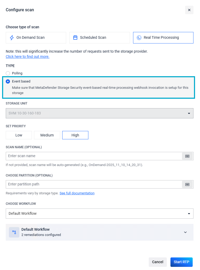 One last step is to enable Real Time scan with Event-Based for all the storage units corresponding to your SVMs, so that MDSS can processed the new files